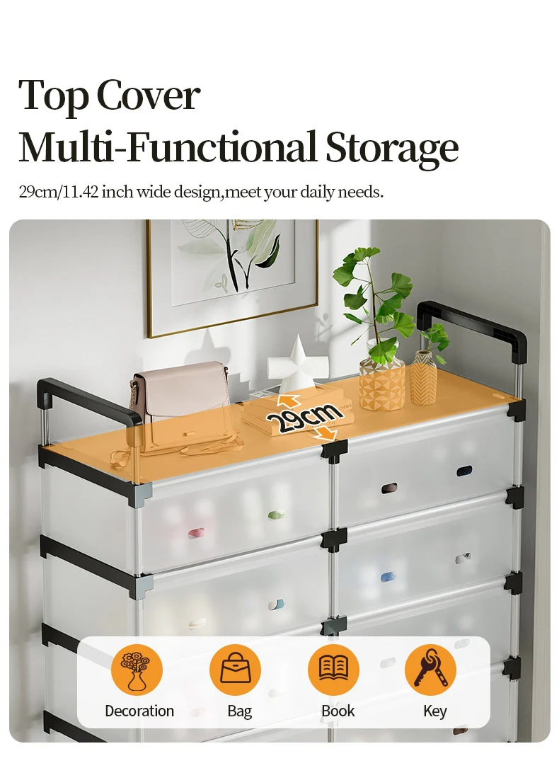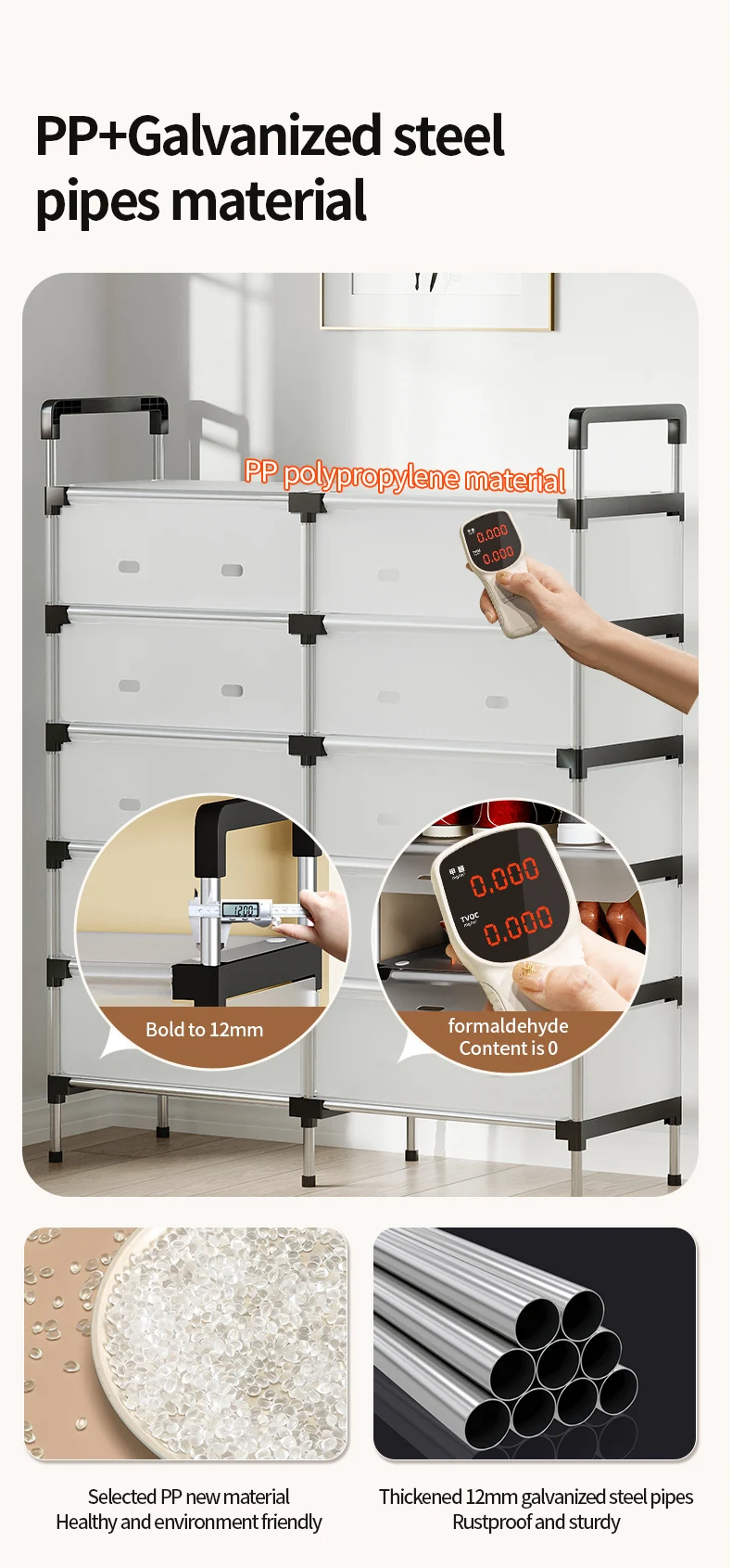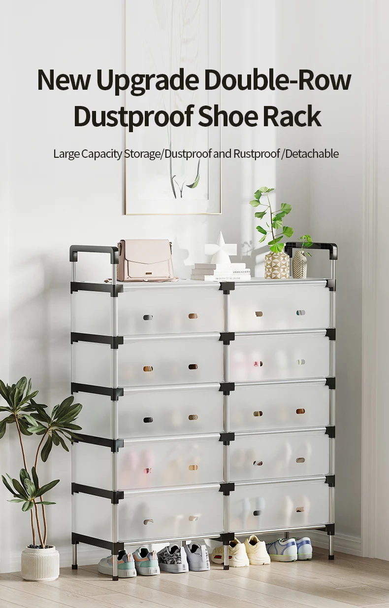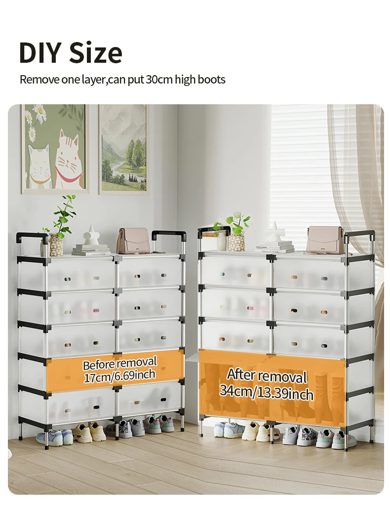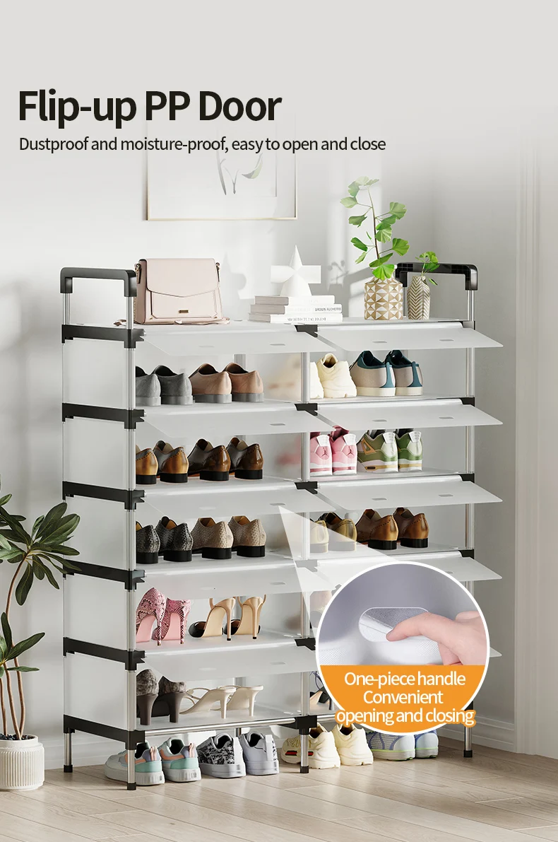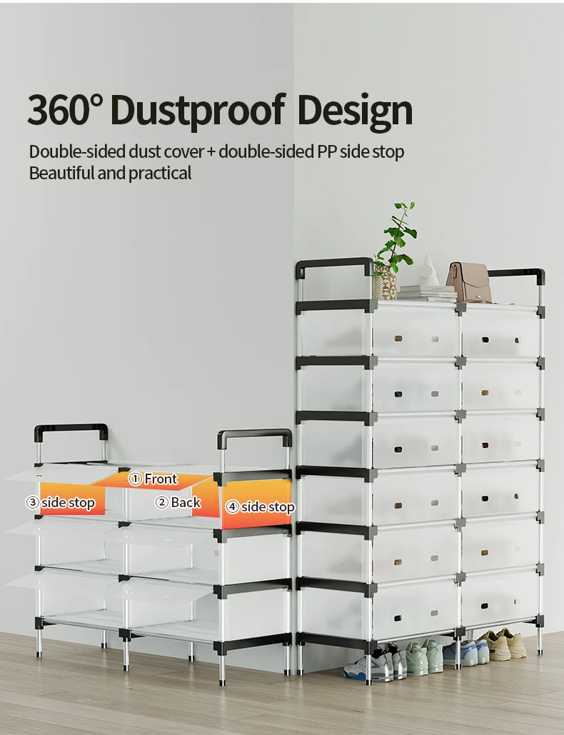 اسم المنتج: رف أحذية مزدوج الصفّ، 14 طبقات، مقاوم للغبار